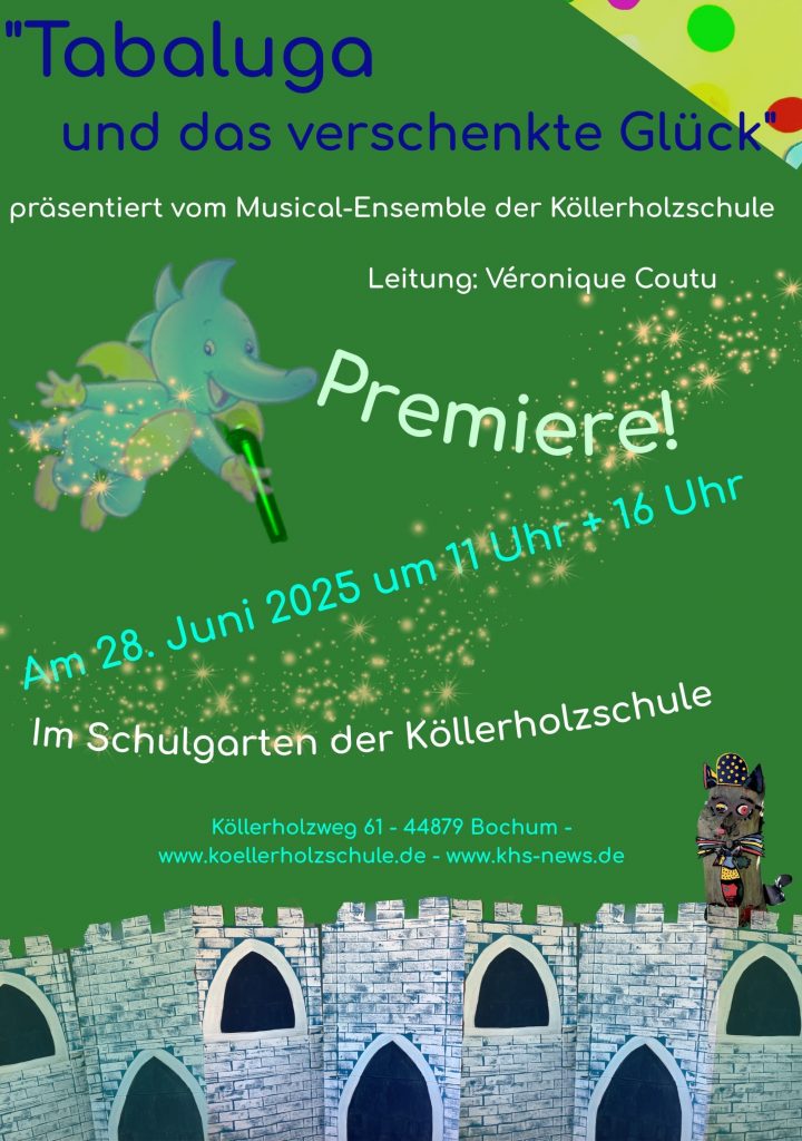 Die Kinder unserer Köllerholzschule führten am 28. Juni 2025 das Musical „Tabaluga und das verschenkte Glück“ im Schulgarten auf. Bei bestem Sommerwetter fand eine Aufführung am Morgen und eine am Nachmittag statt. Eltern, Großeltern, Mitschüler*innen, Mitarbeiter*innen der Köllerholzschule und Personen aus der Schulgemeinde waren bei den Aufführungen dabei.