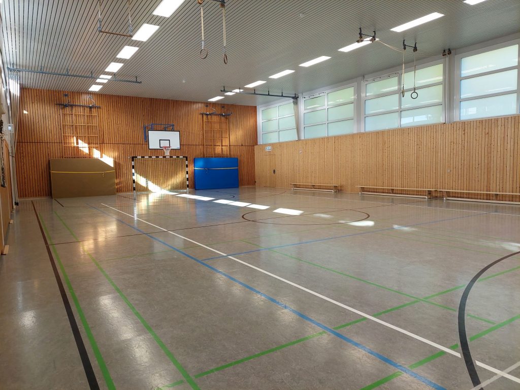 In der Sporthalle bewegen wir uns gerne! Morgens im Unterricht und nachmittags im Ganztag finden hier viele verschiedene Sportsachen statt, z.B. Fußball, Handball, Tennis, Einrad, Tanz und Akrobatik, Hobby-Horsing und viele weitere Angebote. Aber auch Sportvereine nutzen unsere Sporthalle.