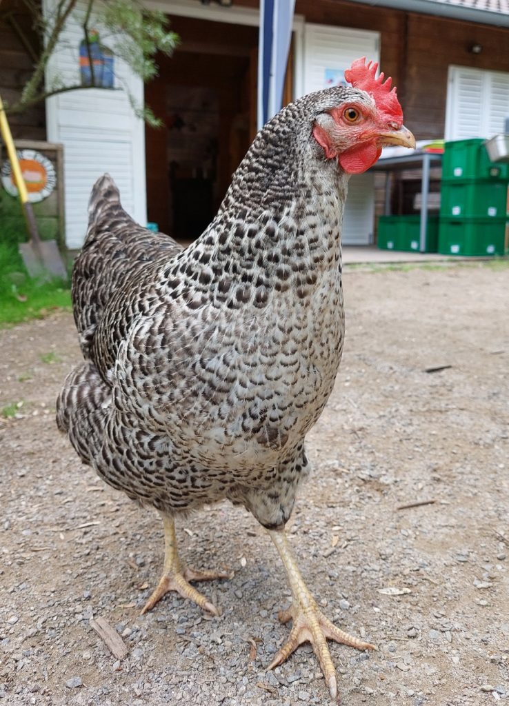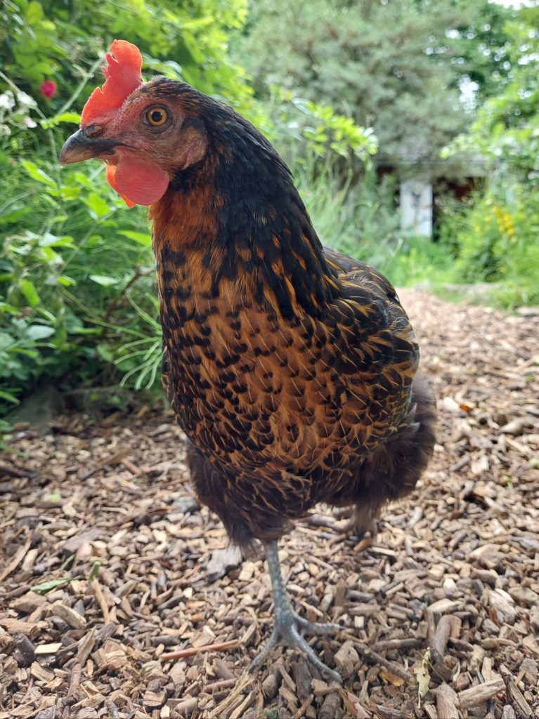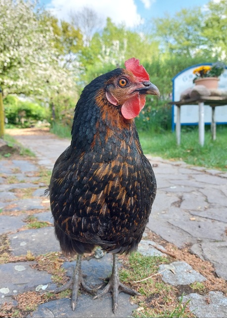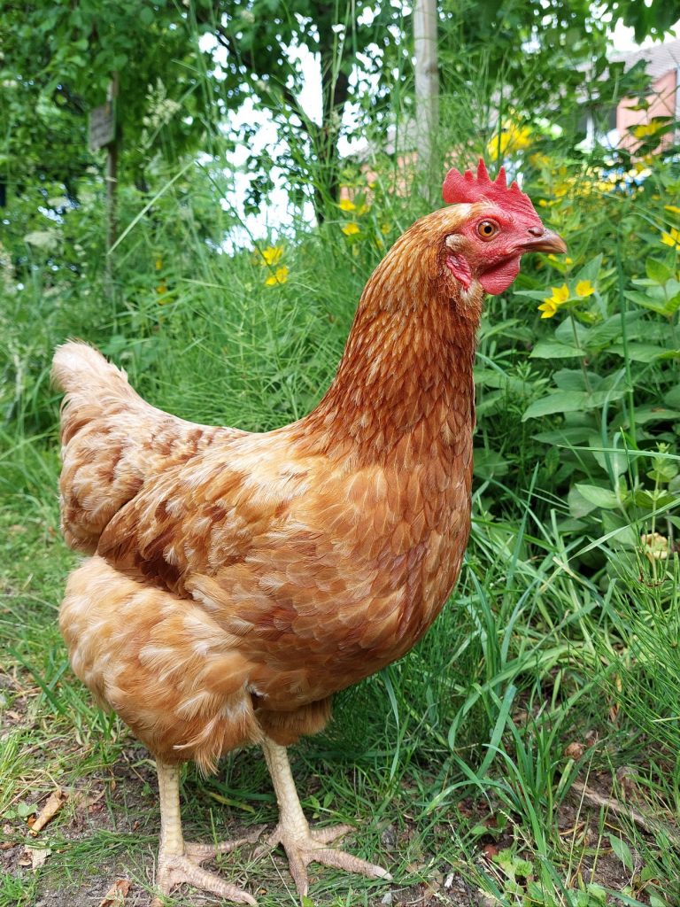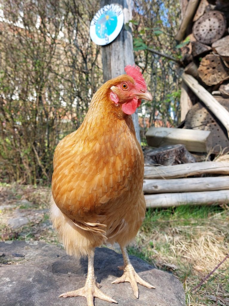 Unsere 5 Hennen, die jedes Kind kennt.Das ist Frieda. Frieda ist ein Lohmann Brown. Sie hat hellbraunes Gefieder. Im Nacken hat sie schöne weiße Schmuckfedern.Frieda als Junghenne kurz nach ihrem Einzug bei unsDas ist Elsa. Auch Elsa ist ein Lohmann Brown. Ihr Gefieder ist eher dunkelbraun mit schönen Tupfen. Leider ist Elsa im August 2025 verstorben.Elsa als Junghenne kurz nach ihrem Einzug bei unsDas ist Berta. Berta ist ein Bovan. Ihr Hals und ihr Bauch sind orange-braun gefärbt. Die Federn auf dem Rücken schimmern grün und lilafarben. Berta ist leider im Juli 2025 verstorben.Berta als Junghenne kurz nach ihrem Einzug bei unsDas ist Wilma. Wilma ist auch ein Bovan. Ihre Brust ist nicht so stark orange gefärbt. Auch Wilmas Federn schimmern grün und lilafarben.Wilma als Junghenne kurz nach ihrem Einzug bei unsDas ist Henriette. Henriette ist ein Blausperber. Die Zuchtlinie heißt so, weil ihre Federn auf dem Rücken in der Sonne blau schimmern.Henriette als Junghenne kurz nach ihrem Einzug bei unsDas ist Hedi. Auch Hedi ist ein Blausperber. Leider ist Hedi im Oktober 2023 nach kurzer schwerer Krankheit gestorben.