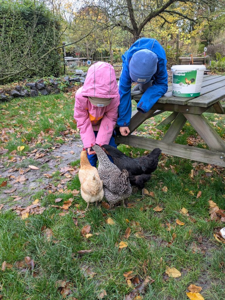 Auch am Wochenende müssen unsere lieben Hühner versorgt werden. Vielen Dank an alle Kinder und Erwachsene, die dies unterstützen.