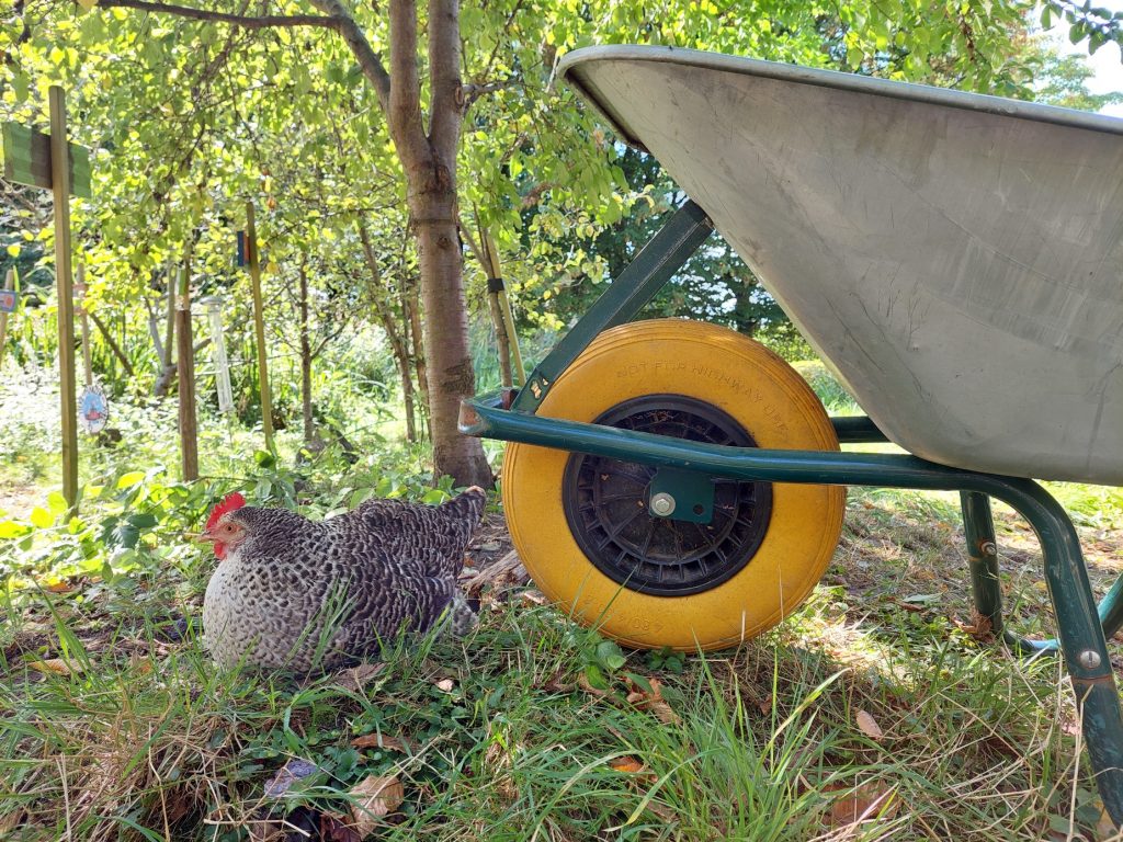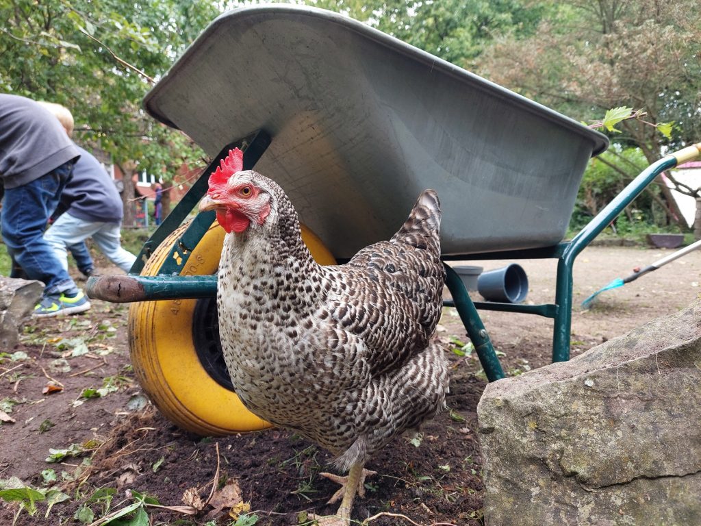 Hat jemand Gartenarbeit gesagt? Wir sind dabei! Kinder, Erwachsene und die Hühner arbeiten zusammen.