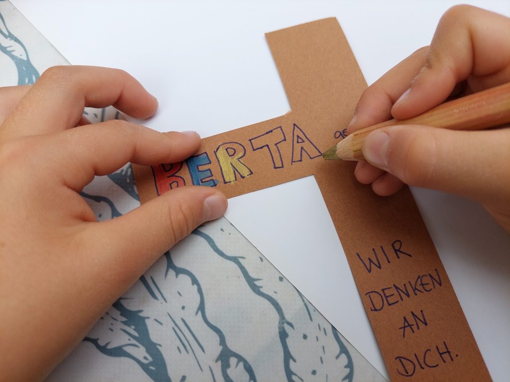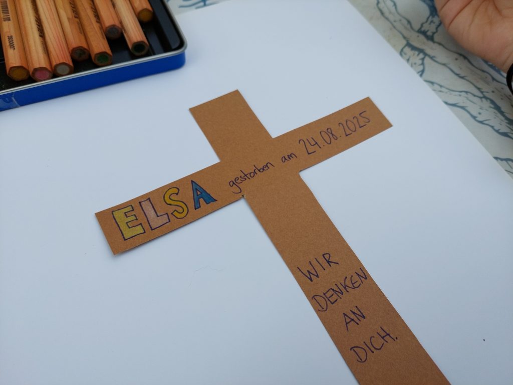Unsere Schulkinder vermissen Berta und Elsa. Damit sie sich immer an die beiden erinnern können, haben die Kinder Kreuze gestaltet.