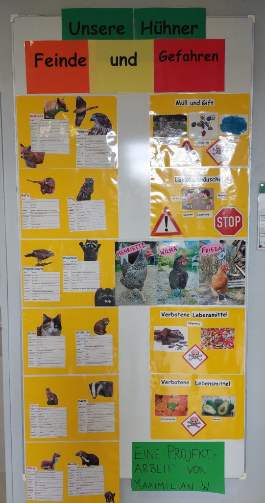 Diese tolle Projektarbeit von Maximilian hängt nun im Foyer unserer Schule. Hier können alle etwas zum Thema „Feinde und Gefahren“ lernen.