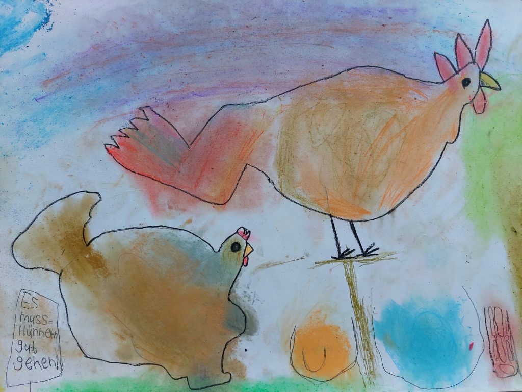 Es soll Hühnern gut gehen. Darüber sind sich die Kinder der Köllerholz-Hühner-AG einig. So stellen sie sich das Leben zufriedener Hühner vor.