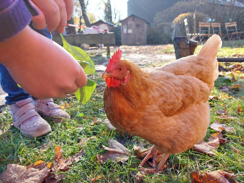 Kinder lernen von Hühnern und Hühner lernen von Kindern.